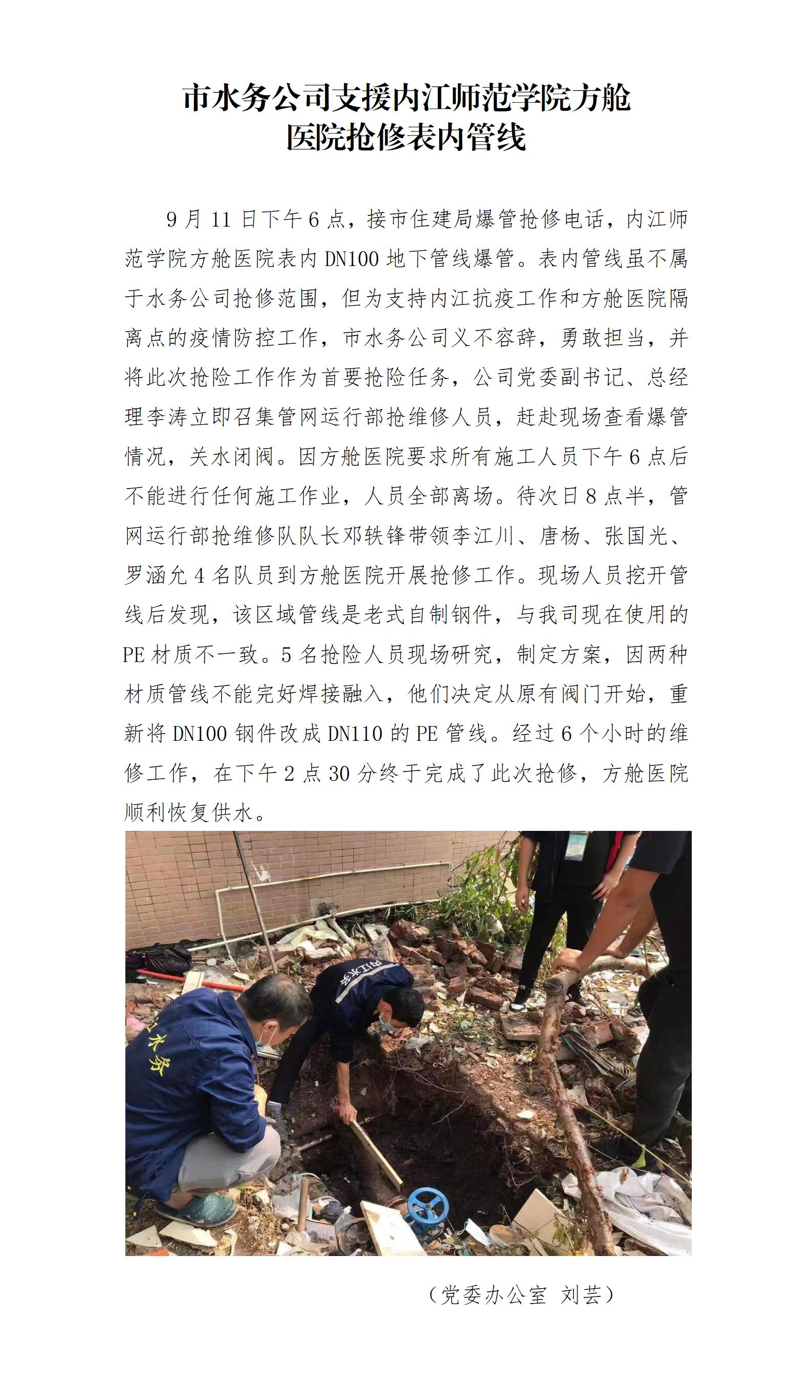 市水務公司支援內江師范學院方艙 醫院搶修表內管線