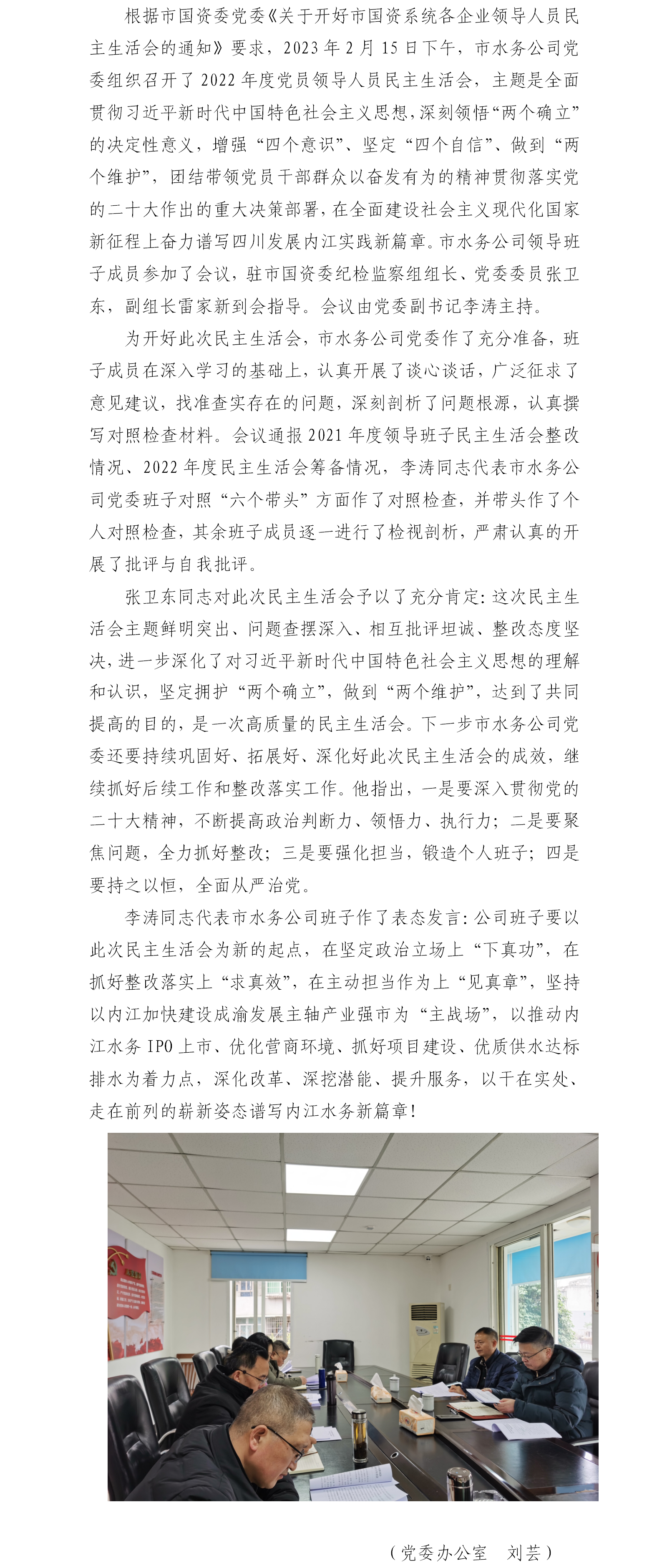 市水務(wù)公司黨委召開(kāi)2022年度黨員領(lǐng)導(dǎo)人員民主生活會(huì)