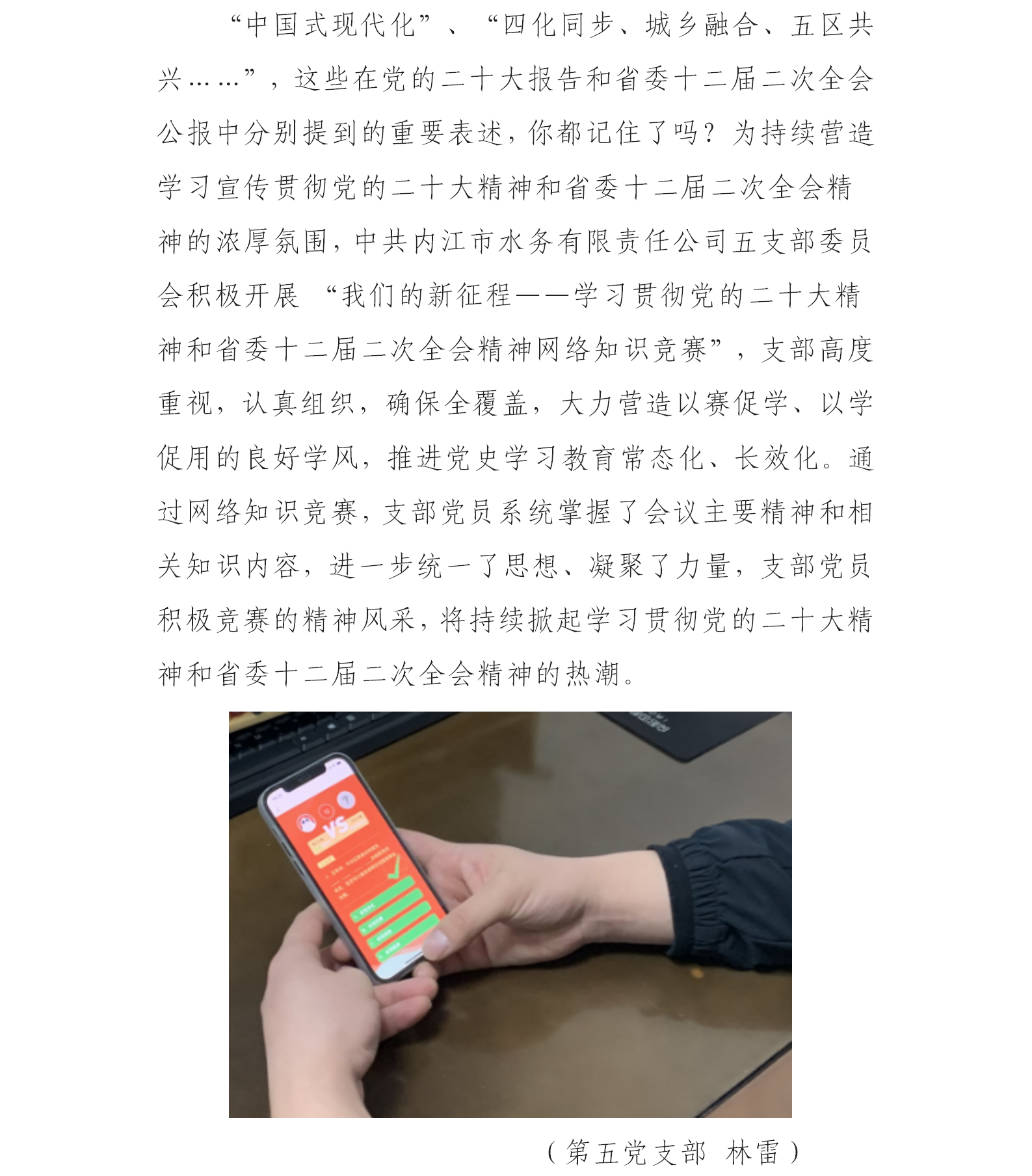 水務(wù)公司第五黨支部積極參與“黨的二十大精神及省委十二屆二次全會精神網(wǎng)絡(luò)知識競賽”