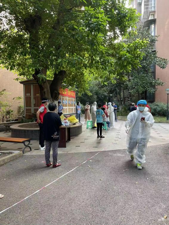 支部宣傳委員倪勇帶頭,與第六黨支部黨員余川、楊華文,水務公司退休黨員何蜀治、王萍在天河街小區組建成臨時黨支部,全力以赴投入到小區抗疫一線工作中,協助社區工作人員填寫和分發通行證,在核酸檢測點維持秩序。黨員熊瑞楷積極加入盧浮春天小區業主委員會,參與送黃碼人員到就近醫院做核酸檢測、分發通行證、維持核酸檢測現場排隊秩序、護送出門看病或開生活超市的特殊人群外出等工作;黨員楊艷、王曉東、廖玲三名同志分別在靈秀清風苑、恒祥嘉苑、歐城印象小區擔任十戶長,協助小區物業上門通知每戶居民做核酸。