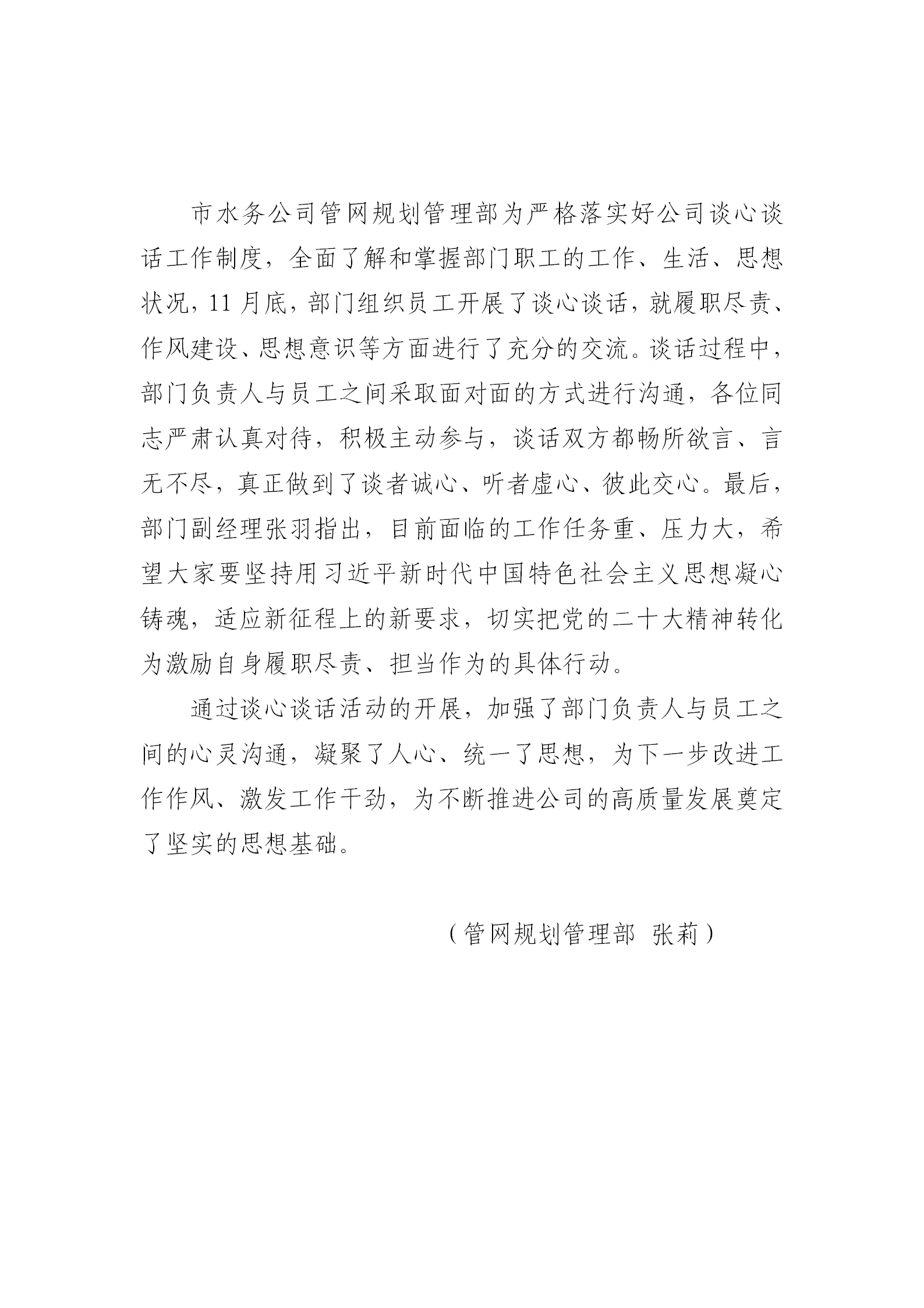 管網(wǎng)規(guī)劃管理部開(kāi)展談心談話(huà)活動(dòng)