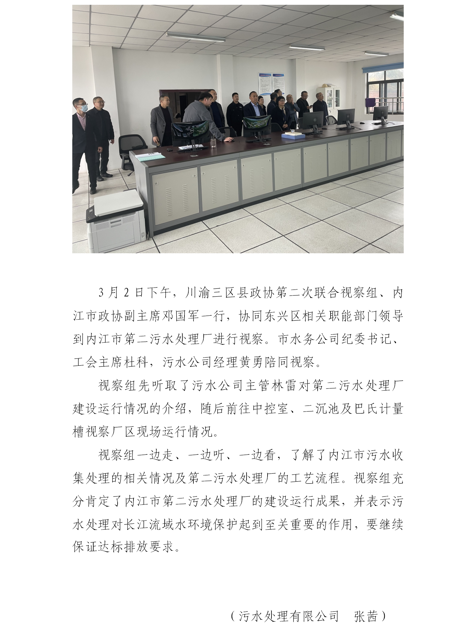 川渝三區(qū)縣政協(xié)第二次聯(lián)合視察組視察內(nèi)江市第二污水處理廠