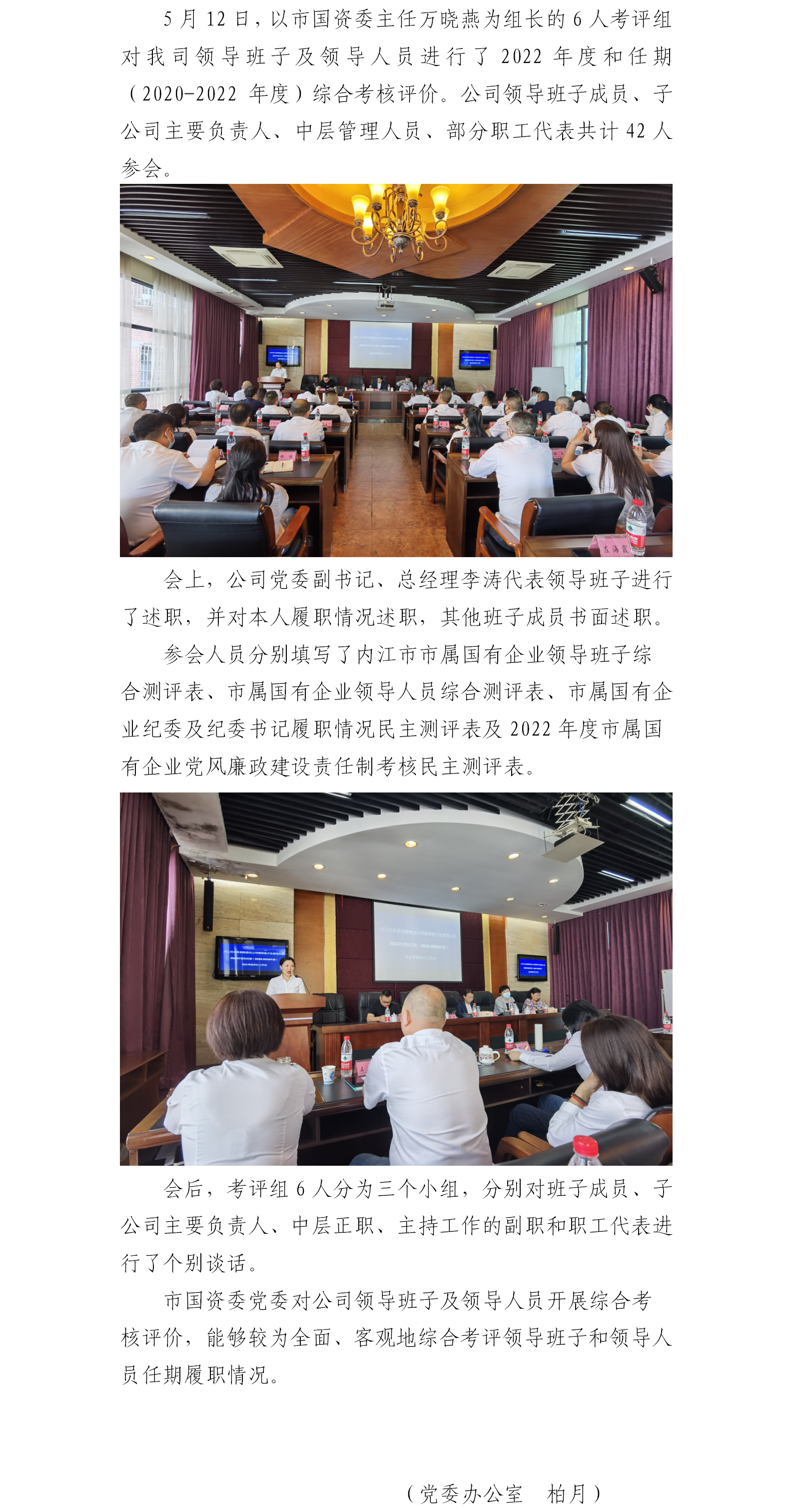 市國資委黨委對公司領導班子及領導人員開展2022年度和任期綜合考核評價