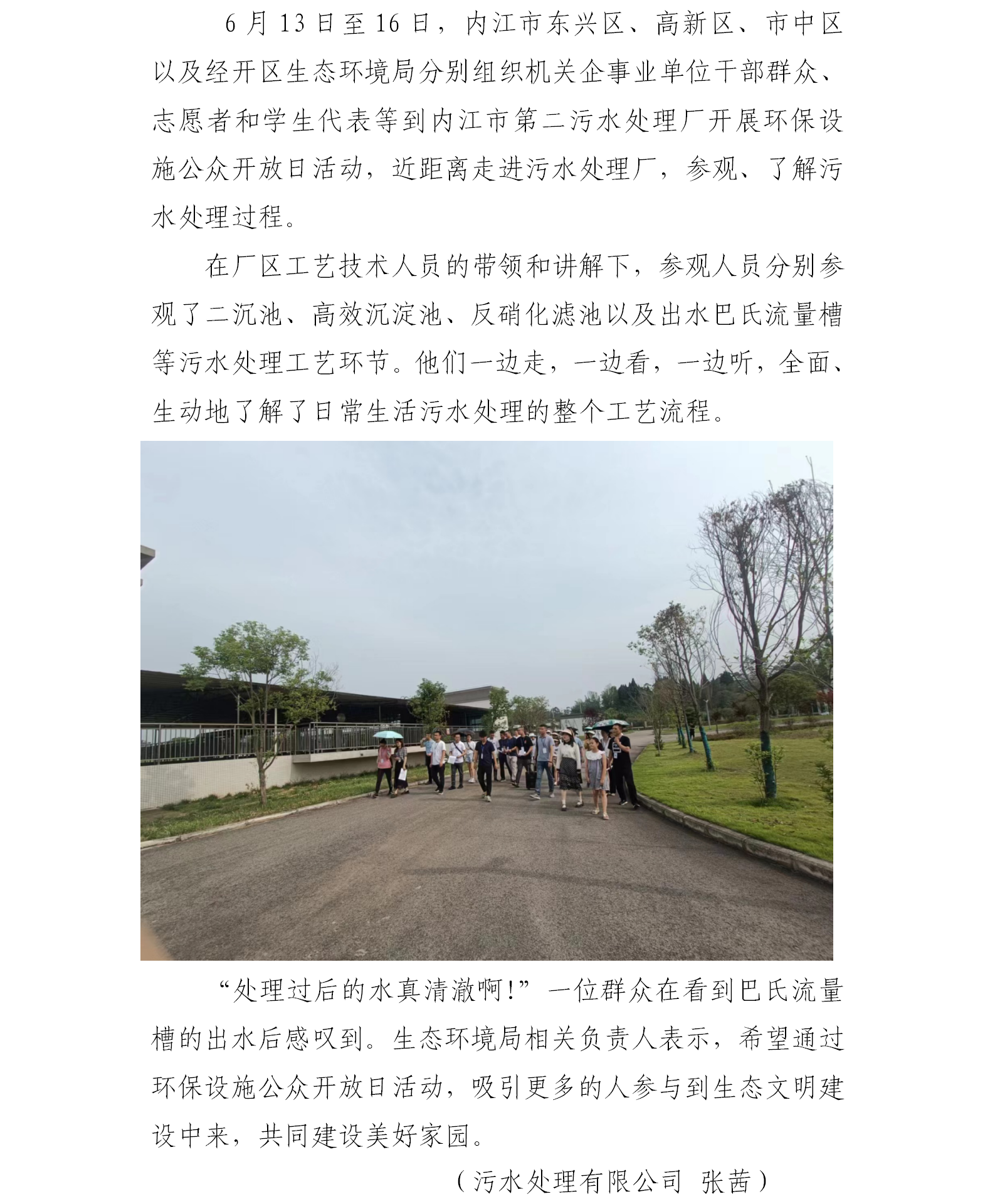 內江市多區生態環境局組織到第二污水處理廠開展環保設施公眾開放日活動