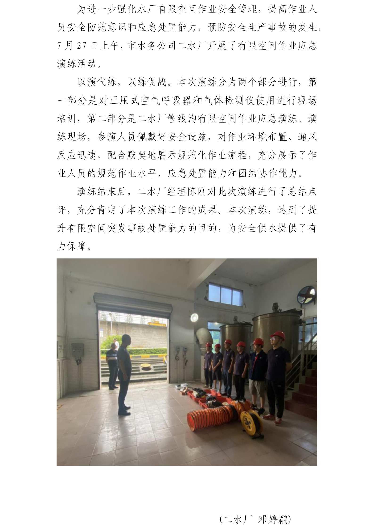 市水務公司二水廠開展有限空間應急演練