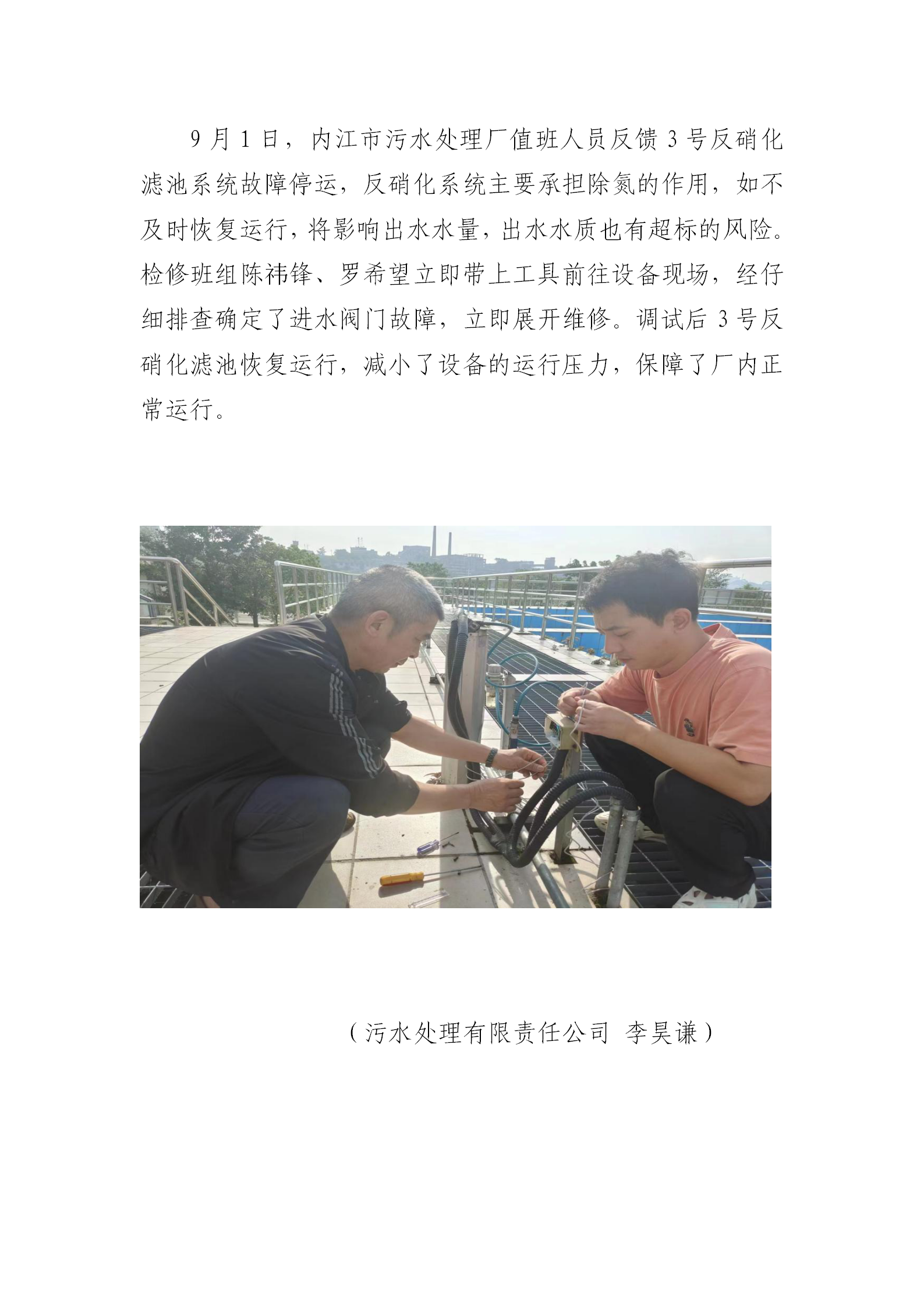 內江市污水處理有限責任公司第一污水處理廠維修反硝化濾池故障