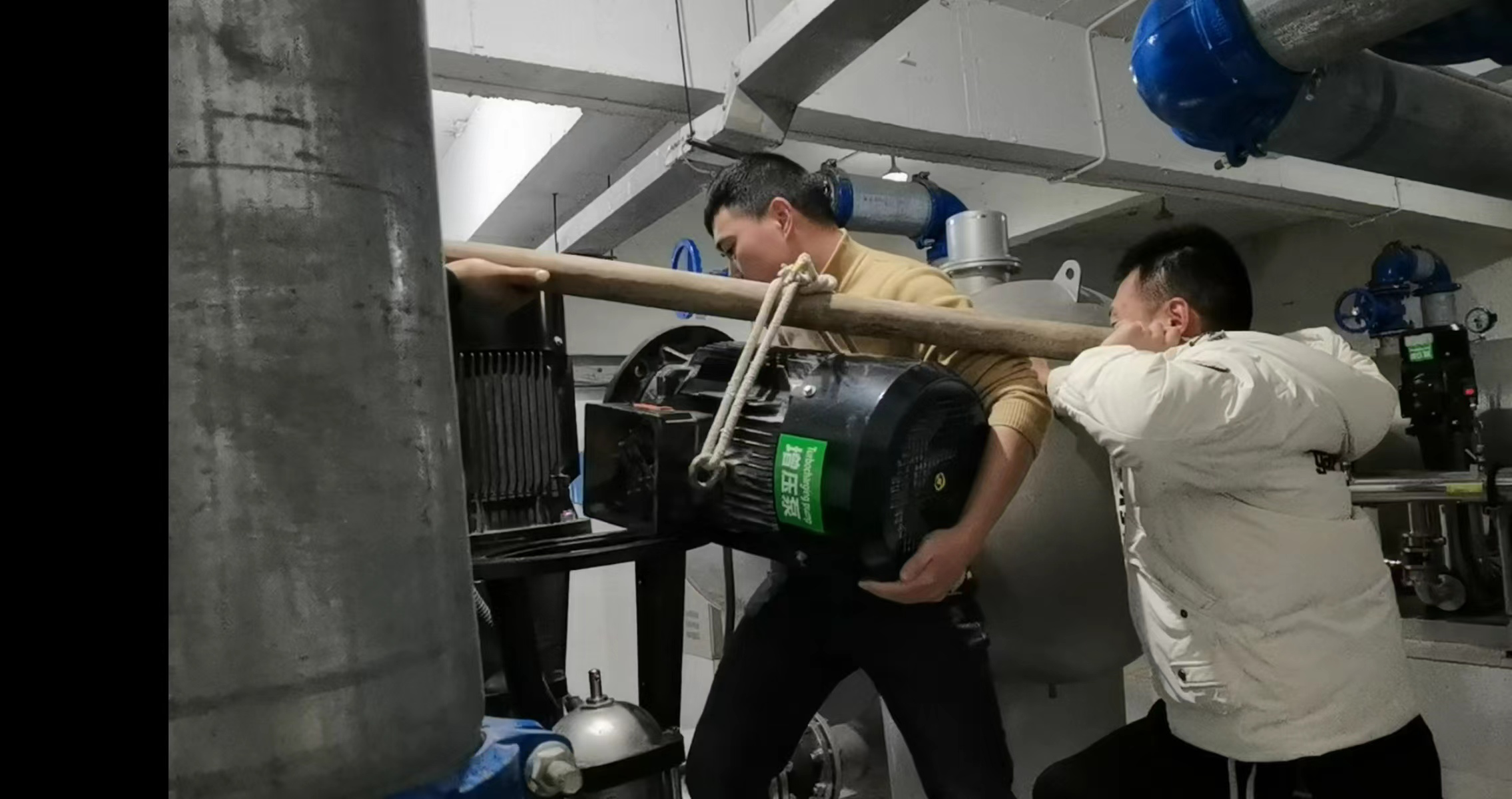 豪鵬公司加大了二次供水泵房的巡檢力度,全力保障各小區(qū)的用水安全。近日,在巡檢過程中巡檢人員劉靈漾發(fā)現(xiàn)春天公園城小區(qū)的水泵運行出現(xiàn)聲音異常,存在安全隱患,維修人員夏旭陽及時趕赴春天公園城小區(qū)泵房。經(jīng)多番細(xì)致檢查,發(fā)現(xiàn)異響聲音原因來源于泵體內(nèi)部的葉輪磨損導(dǎo)致,維修人員隨即對泵體內(nèi)部葉輪進行更換。夏旭陽、劉靈漾將重達300斤的增壓泵抬起、歸位、試機,異響消除 ,安全隱患得以解決。