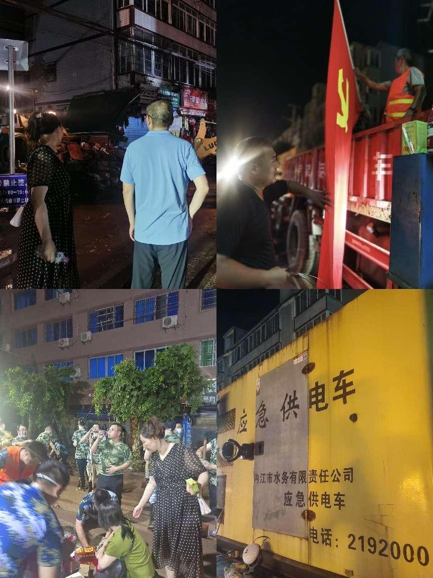 7月13日下午,一場突如其來的特大暴雨打破了內江的寧靜,短短幾個小時內,洪水淹沒了周邊大部分鄉鎮。災后恢復工作成為了當前內江最重要的民生任務。內江市水務有限責任公司(以下簡稱市水務公司)黨委在確保供排水安全穩定的前提下,積極組織12名黨員職工參加內投集團搶險突擊隊,于14日-15日先后深入到受災嚴重的平坦鎮、田家鎮,開展抗洪救災工作。