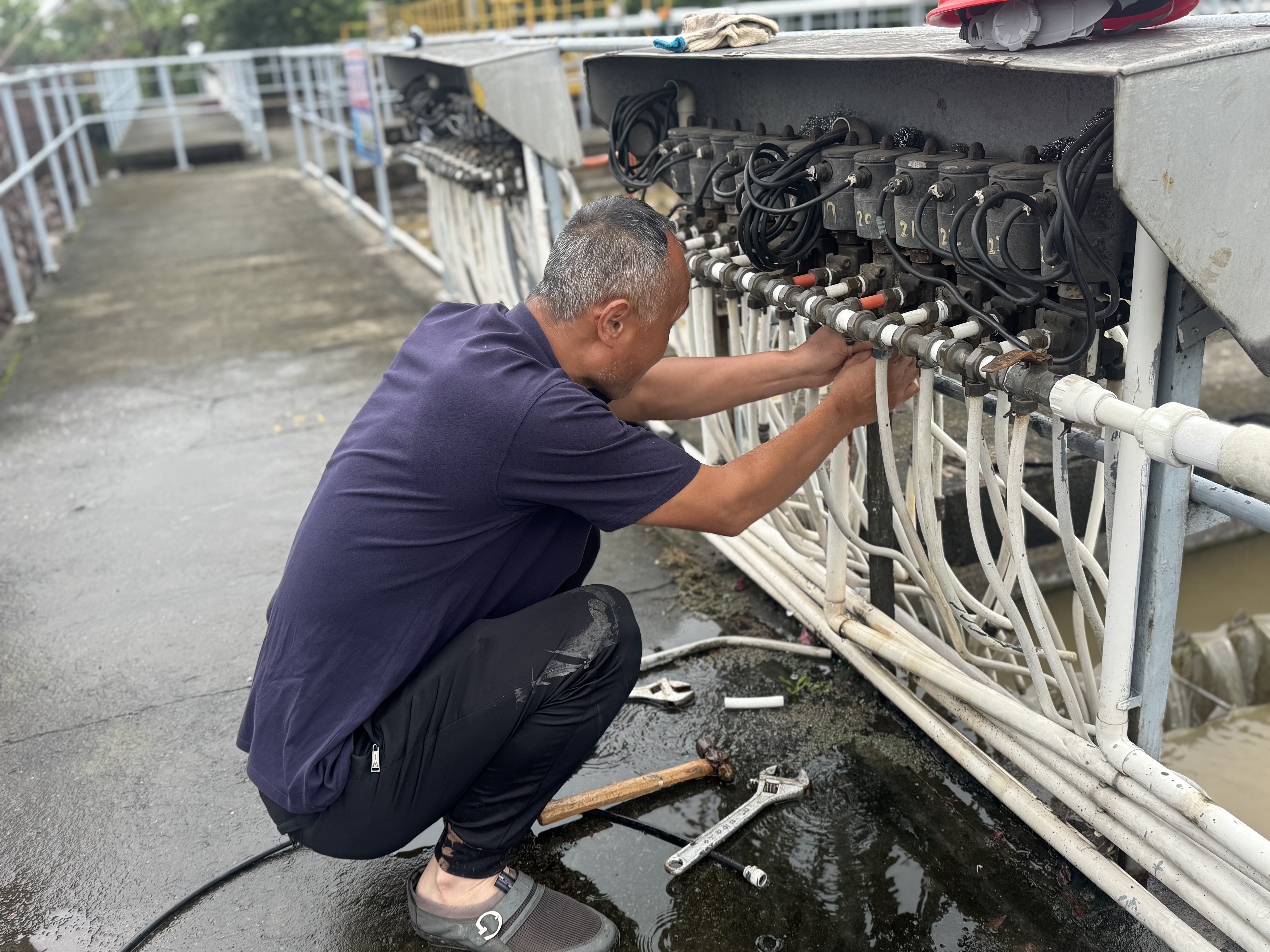 供水安全的責任重于泰山。7月8日清晨,剛剛完成三水廠二氧化氯投加設備維修的供水分公司維修組,聞令火速轉戰(zhàn)二水廠,投入到緊張的“戰(zhàn)斗”中:迅速展開拆解、診斷、更換、調試工作。經驗豐富的維修師傅們動作嫻熟而精準,他們以專業(yè)的技術和頑強的作風,與時間賽跑,與故障較量,高效疏通了排泥系統(tǒng)的“堵點”,確保流進千家萬戶的每一滴自來水,都經得起最嚴格的檢驗。