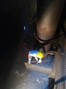 4月11日下午,各項準備工作有序開展。廠外提升泵站停運,工作人員頭戴安全帽、身著雨衣褲,迎著泵坑污水散發的臭氣,踩著淤泥渣土下井,清渣工作緊鑼密鼓的進行。在廠內機修及工藝人員的共同努力下,一期、二期提升泵房和濾池泵坑清渣工作于當晚21點順利完成,保證了污水處理廠設備的正常運行和水質達標排放。