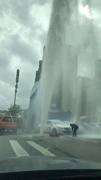 搶修人員到達(dá)現(xiàn)場(chǎng)后,發(fā)現(xiàn)消火栓已被撞斷,大量自來(lái)水噴涌而出,形成10多米高的水柱,附近道路積水嚴(yán)重,對(duì)附近學(xué)校人員的出行造成嚴(yán)重影響。搶修隊(duì)員在渾濁的閘閥井里摸索著關(guān)閉閥門(mén),及時(shí)排除安全隱患,經(jīng)過(guò)近一個(gè)小時(shí)的搶修,11時(shí)許,完成搶修,恢復(fù)供水。