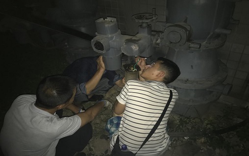 516日晚上19:43分,污水處理廠一期4號生化池進氣閥跳閘,檢修人員放棄自身休息時間,立即趕赴現場開展搶修。