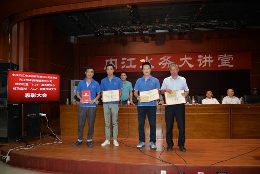 會上,大家觀看了成功處置“6·28”高濁度洪水和“7·12”超警戒洪峰專題片。公司黨委委員、副總經(jīng)理林冬宣讀了《關(guān)于表彰成功處置6·28高濁度洪水和“7·12”超警戒洪峰的決定》。公司領(lǐng)導(dǎo)班子成員分別為獲得先進的集體和個人頒獎。四位模范標兵分享了他們在兩次搶險救災(zāi)工作中的親身經(jīng)歷和思想感悟。在他們的發(fā)言中,我們都能尋找到一個共同點,他們都以身為一名水務(wù)人關(guān)鍵時刻勇于擔當而驕傲。