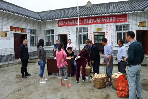 上午,吳書記一行在大橋村開展“以購代捐”活動(dòng),收購貧困戶農(nóng)副產(chǎn)品(地瓜),并現(xiàn)場發(fā)放收購資金。