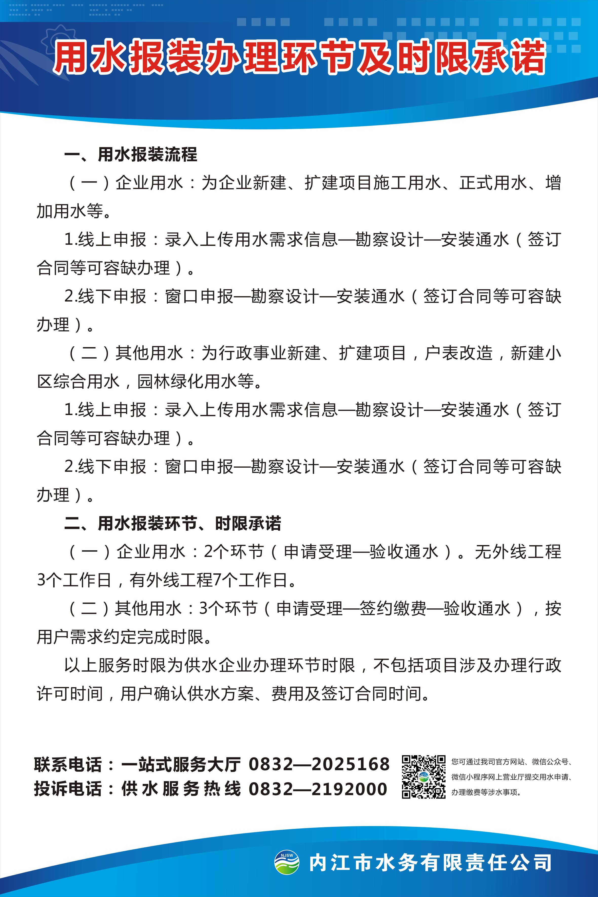 用戶報裝辦理環(huán)節(jié)及時限承諾