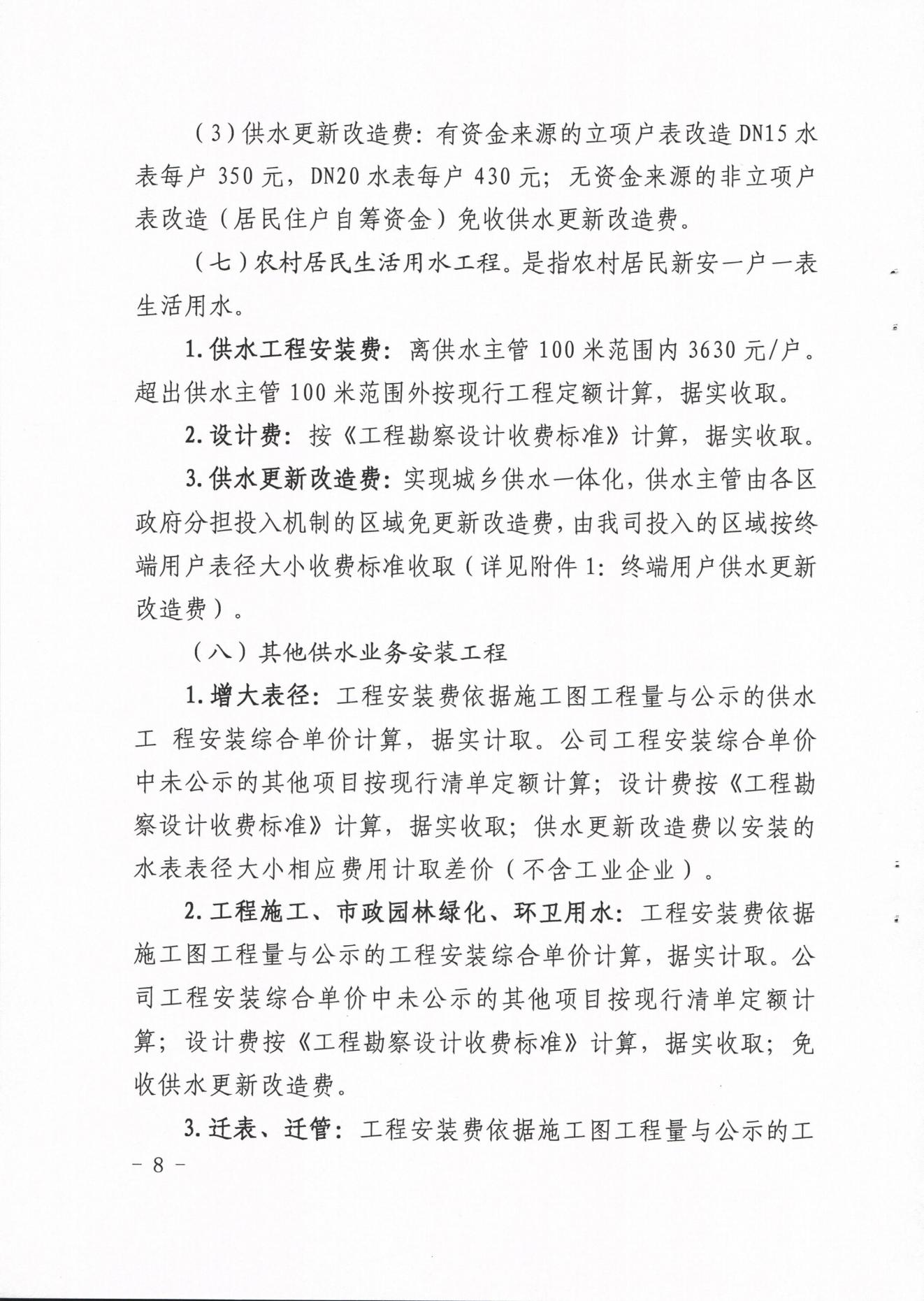 內江市水務有限責任公司供水工程安裝及供水管道更新改造收費管理辦法(試行)